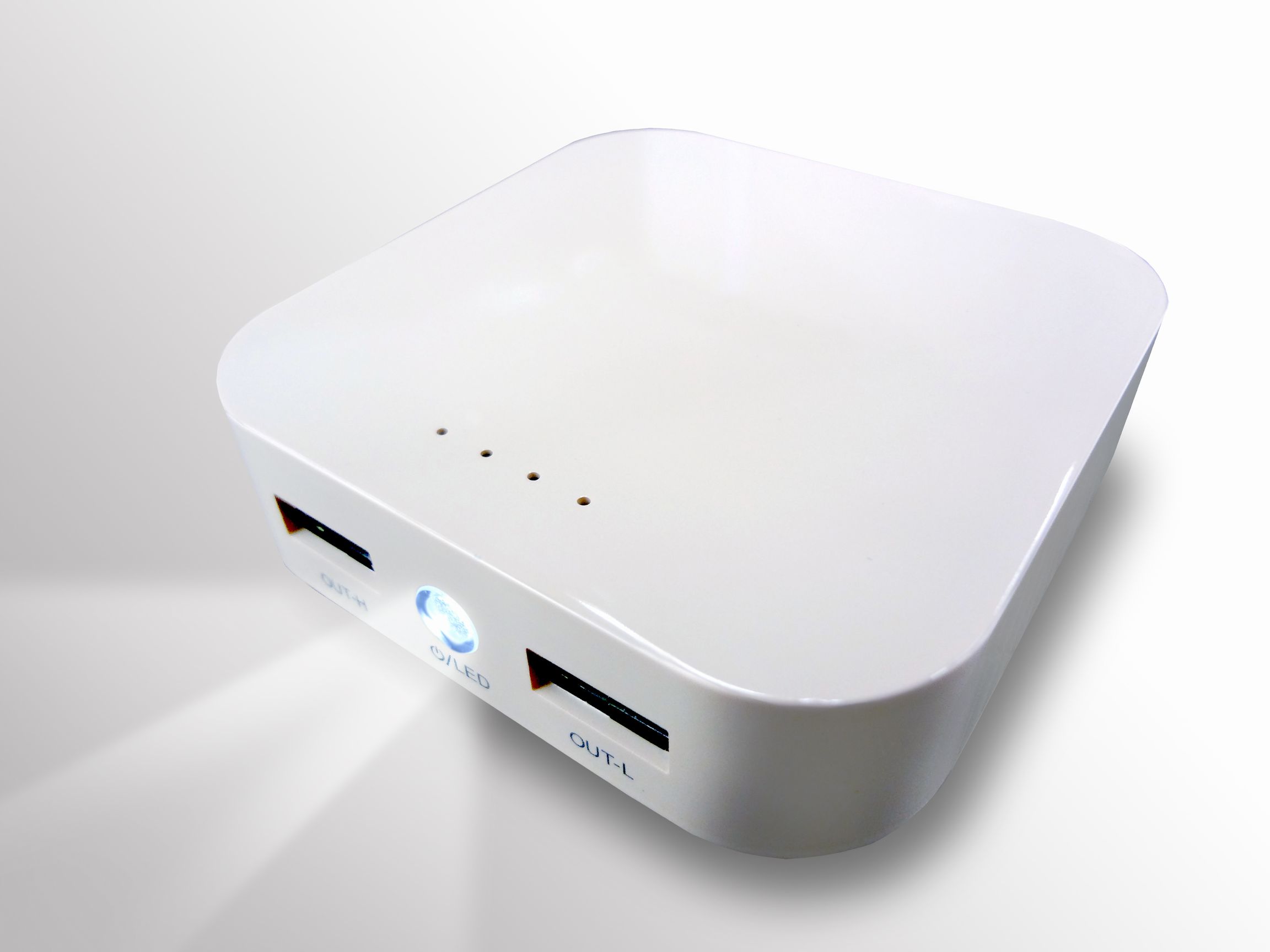 入力ポートは、iPhone用(Apple30pinコネクタ)とMicroUSBの2種類を搭載しており、新たに充電ケーブル等を用意する必要はない。更に、2つのUSB出力ポートを装備しているので、2台同時に充電することも可能となっている。