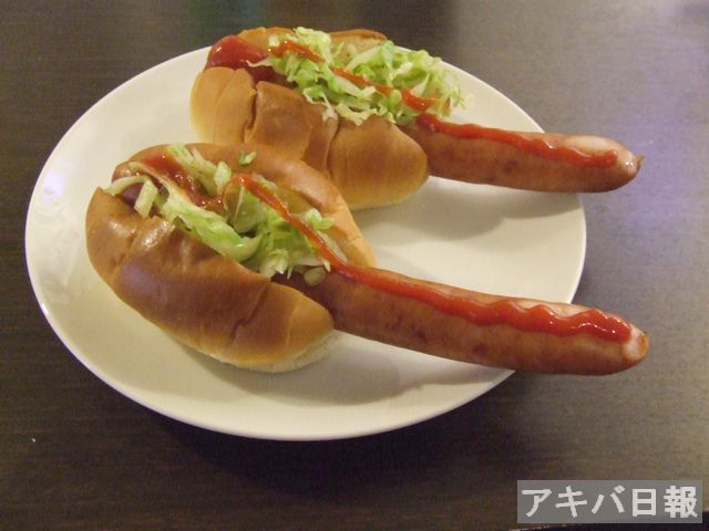 パンに対して、ウインナーが「すごく・・・大きいです・・・」なホットドッグ。