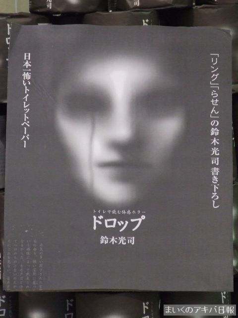 もちろんタダのトイレットペーパーではなく、ドラマや映画化もされた小説「リング」「らせん」の原作者である鈴木光司氏の書き下ろしホラー小説が印刷されているという、トイレで読む小説「ドロップ」。