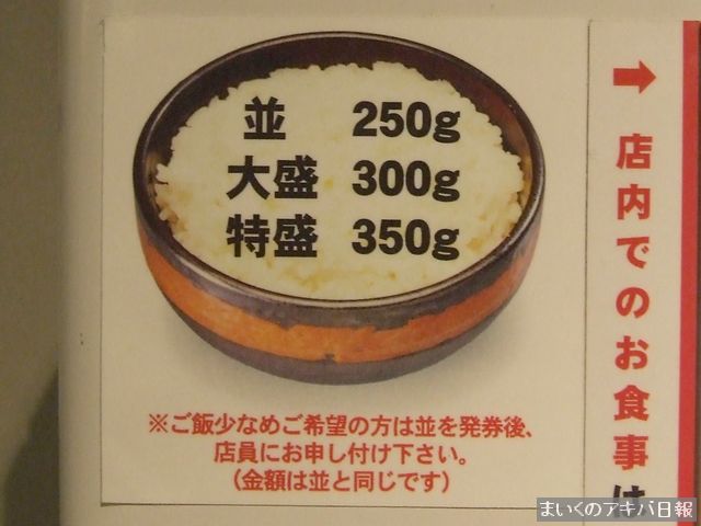 ちなみに、ご飯の量は券売機に表記されている以下の通り。
