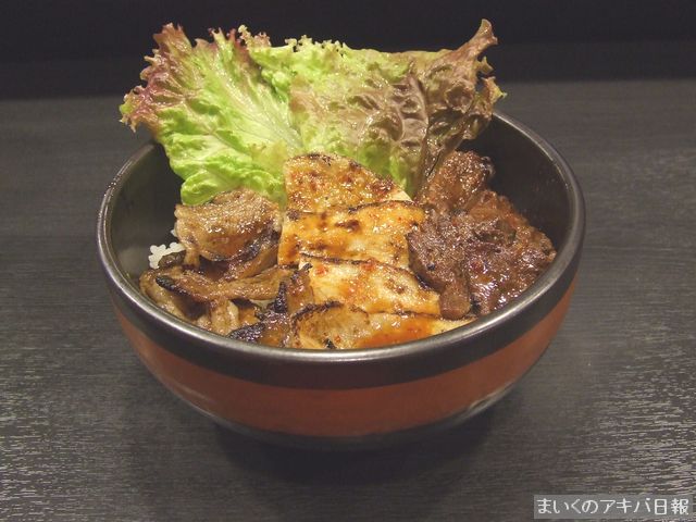 炭火で焼いているだけあって肉は香ばしくて美味い。3種の肉が一つの丼で食べられるのも嬉しい。